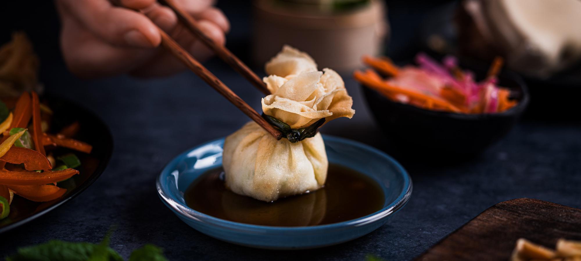 Money bag er en type dumplings, populære i det asiatiske kjøkkenet. Jacobs Utvalgte Money bag er fylt med reker, koriander og chili. Etter 12 minutter i ovnen blir de sprø og gyllenbrune. Serveres med soya- og ingefærsaus og asiatisk mangosalat.