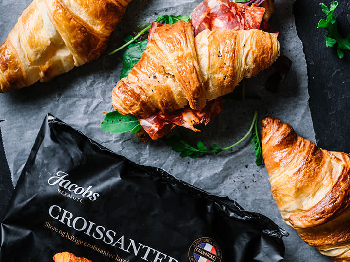 Inviter til frokost med salami fra Levoni i Jacobs Utvalgte franske croissanter, et glass iskald appelsinjuice og en rykende varm kopp kaffe. Hva mer trenger du?