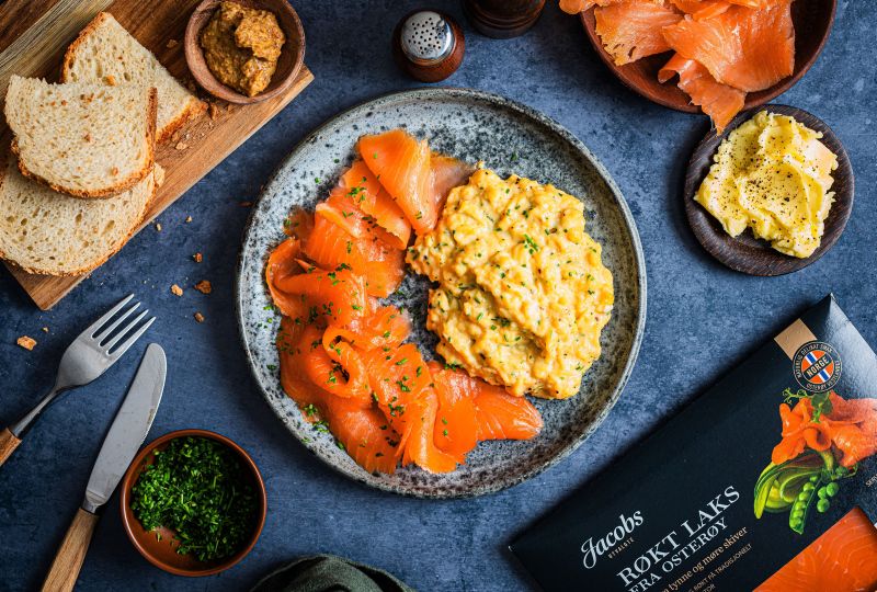 Serveres umiddelbart sammen med Jacobs Utvalgte Røkt laks.