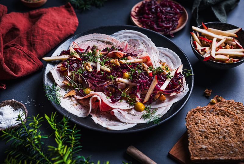 Porchetta med epler og valnøtter