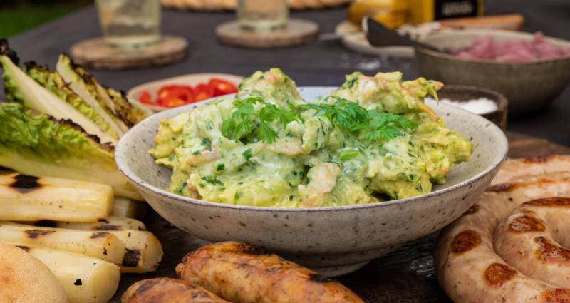Her kan du bruke flere typer sjømat, for eksempel Jacobs Utvalgte Kamskjell. Grill kamskjellene godt på begge sider i cirka 2 min. La de hvile i noen minutter før du skjærer dem i terninger eller skiver og har dem i salaten.